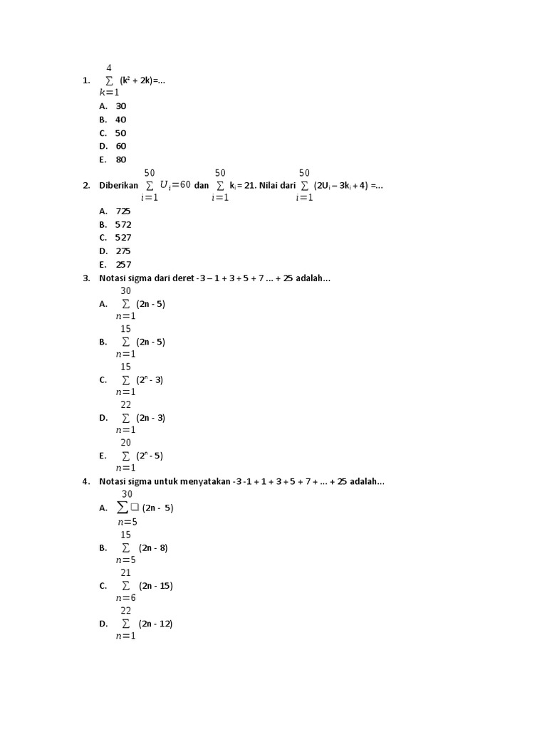 Notasi sigma secara umum ditulis sebagi berikut: Pengertian notasi sigma adalah penghitungan dari urutan bilangan yang hasilnya merupakan jumlah total mereka. Simbol ini adalah simbol sigma. Yuk kerjakan latihan soal yang ada. Contoh soal notasi sigma brainly co id.